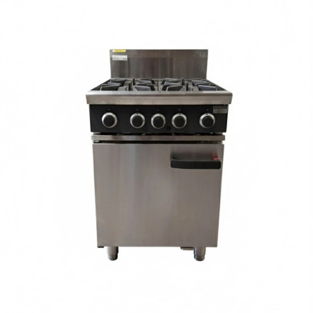 600mm wide4 open burners22MJ open burner ratingHigh crown static oven1/1 GN pan capacityManual pilot ignitionSide hinged doorVitreous enameled oven linerAdjustable front feet and rear rollersStainless steel finishFully modular