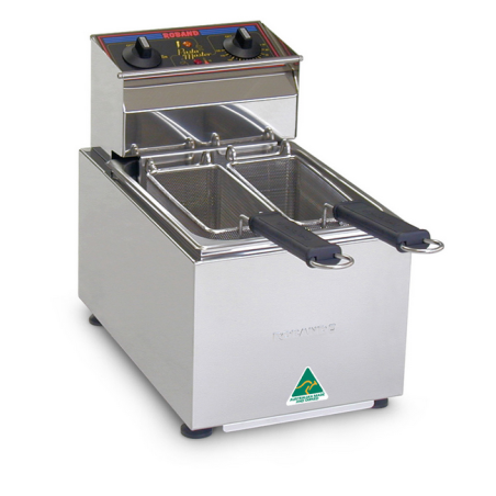 easily removable tank & stainless steel fine mesh baskets. 8 litre capacity.