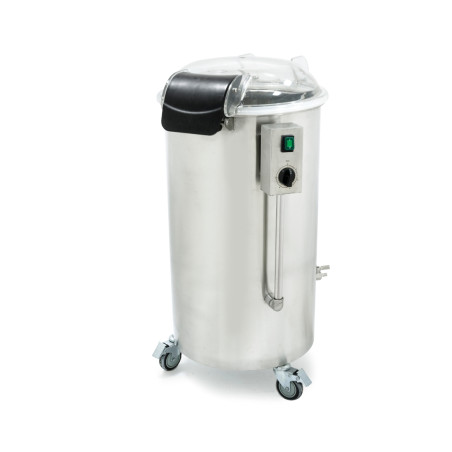 With sturdy construction in food-grade quality materials to keep your food safe, fresh and healthy! This Electric Salad Spinner has a transparent, heavy duty lid for ease of control, and is equipped with castors allowing the operator to wheel unit around the kitchen and under a countertop for easy storage.