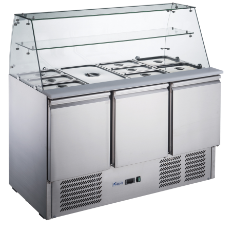 FED-X Three Door Salad Prep Fridge with Glass Top - XS903GC