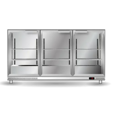 A 3-door bar cooler engineered to serve cold drinks at 1�C to 4�C in ambient environments of up to 35�C