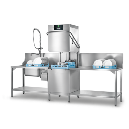 HOBART AUP Hood-type dishwasher with switchable high pressure wash for straight through or corner operation