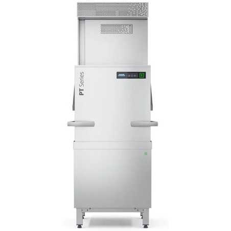 Wide body tall wash chamber pass through warewasher, with integrated air exhasut heat recovery & waste water recovery, driven rinse system, touchscreen control, double skinned hood, elliptecal quick release wash fields, varipower wash pressure adjustment, full flow filtration, clouding sensor, mediamat filtration. Certified no external ventilation required.|