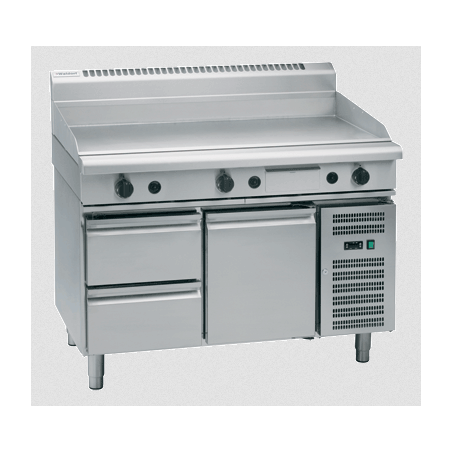 1200mm gas griddle on refrigerated base