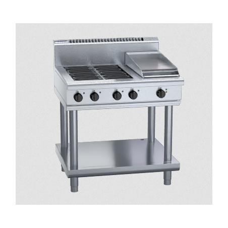 4 radiant element cooktop with 300mm griddle on leg stand