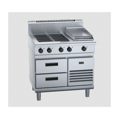 4 radiant element cooktop with 300mm griddle on refrigerated base