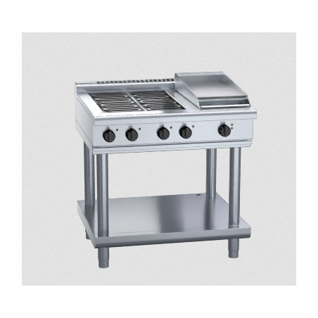 4 radiant element cooktop with 300mm griddle on leg stand