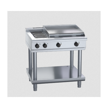 2 radiant element cooktop with 600mm griddle on leg stand